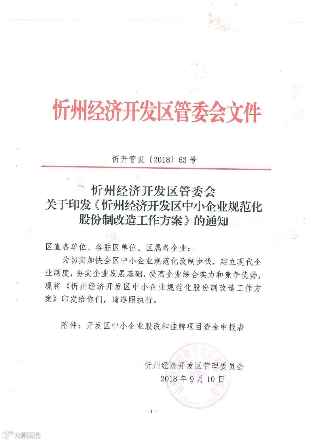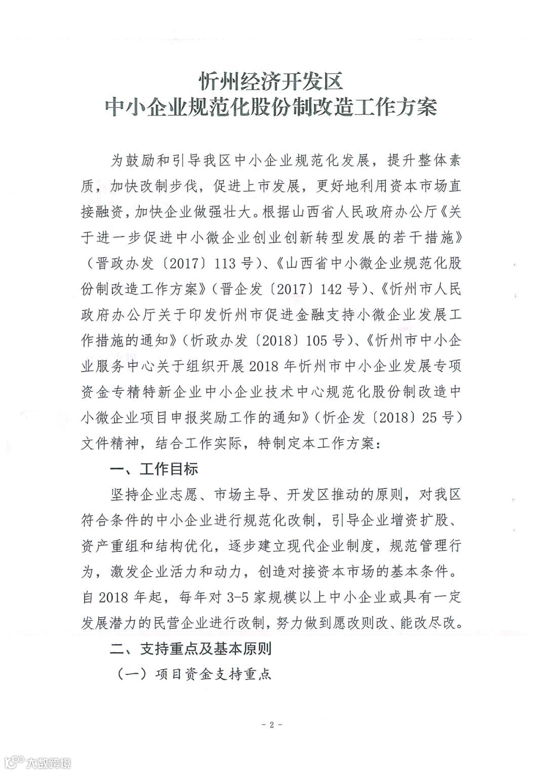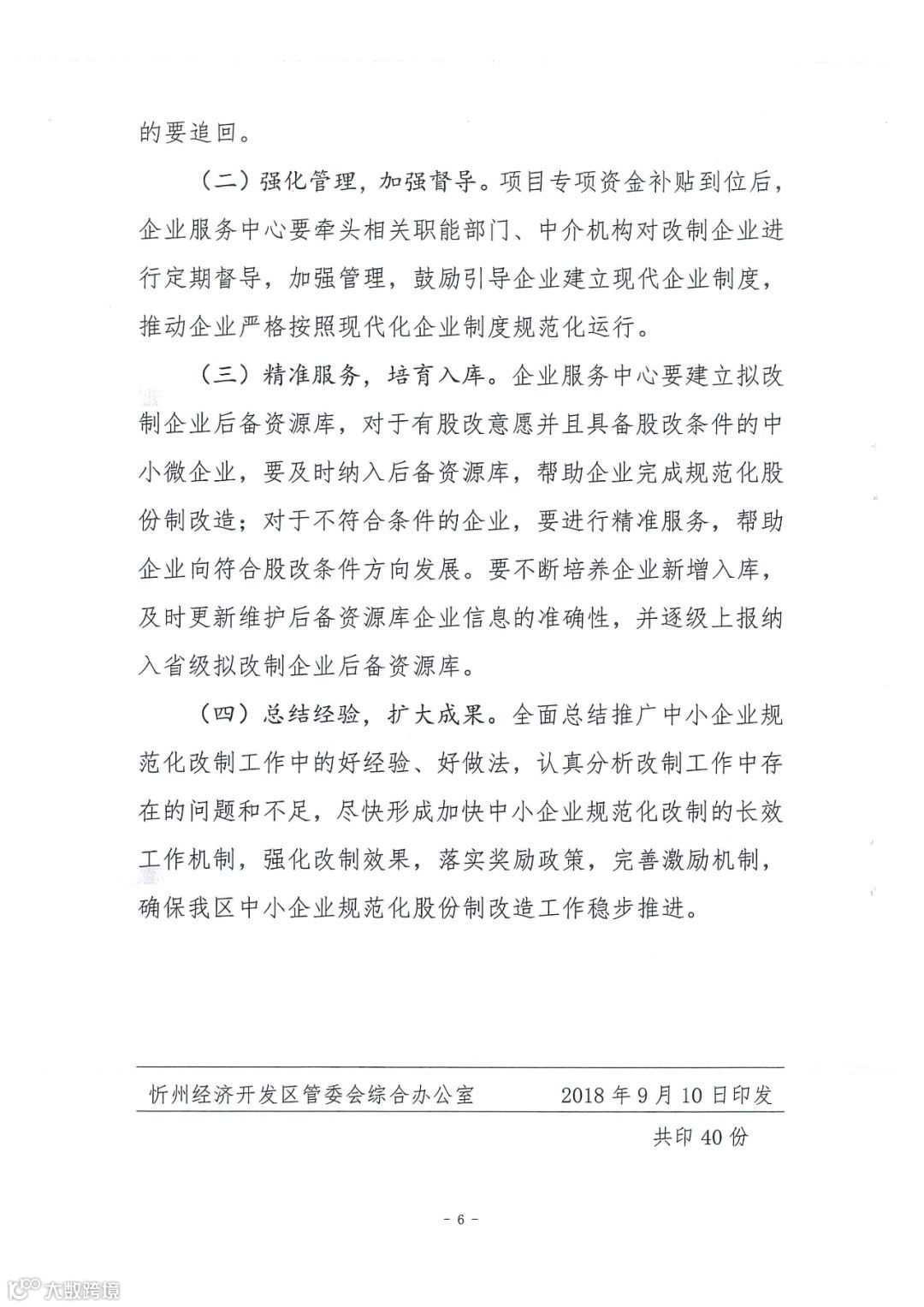 忻州经济开发区管委会关于印发《忻州经济开发区中小企业规范化股份制改造工作方案》的通知
