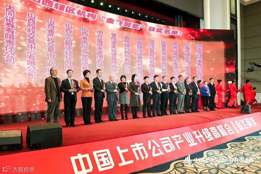 在颁奖典礼上,主办方对在山西资本市场有突出贡献的十佳上市公司、十佳新三板公司、十佳辖区机构进行了表彰。中心作为山西省政府批准设立的唯一一家区域性资本市场,因在服务山西实体经济,促进我省中小企业发展方面的努力和取得的成绩,荣获山西辖区机构“金飞翼奖”。