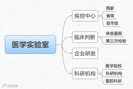 医学实验室从运营属性和经济主体上可以分为:公立医疗机构医学实验室(也称临床实验室)、第三方独立医学实验室、科研教学实验室。