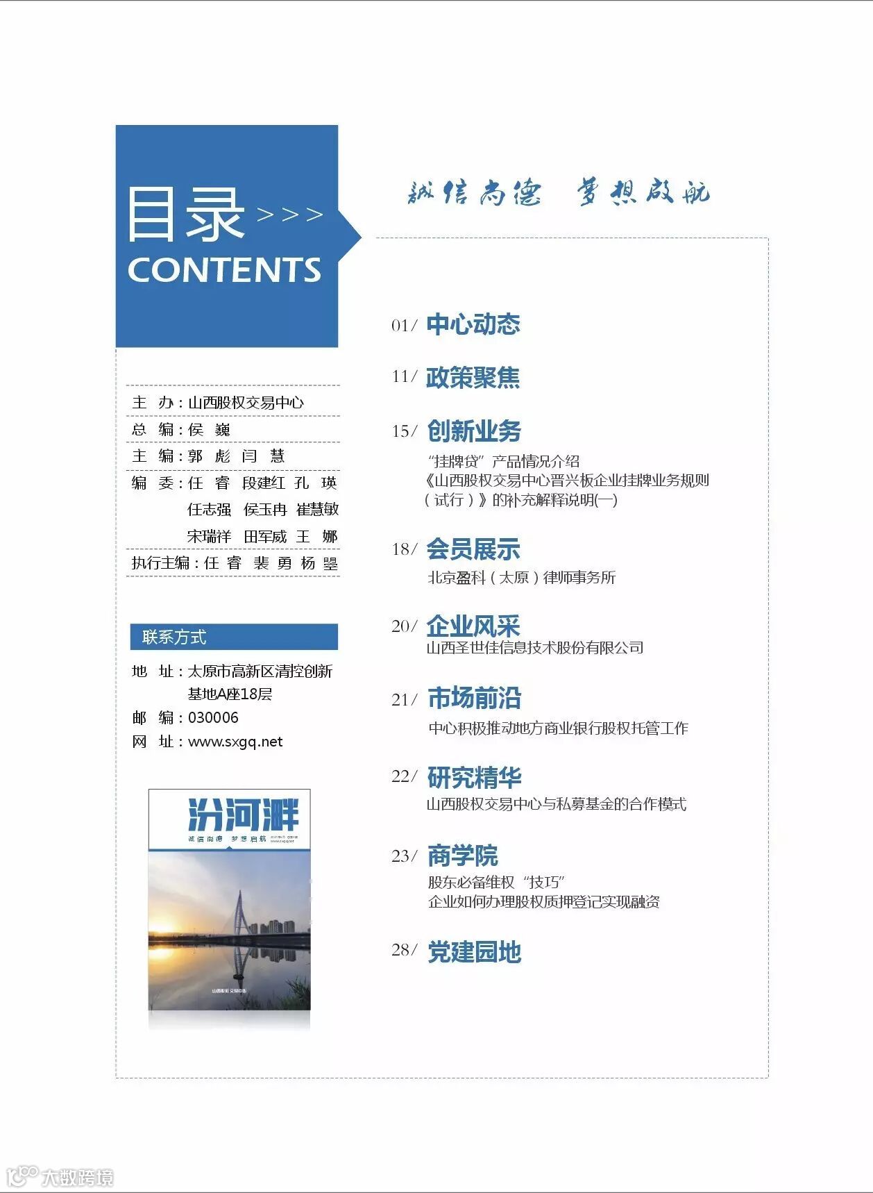 导读:山西股权交易中心内刊《汾河溿》第三期