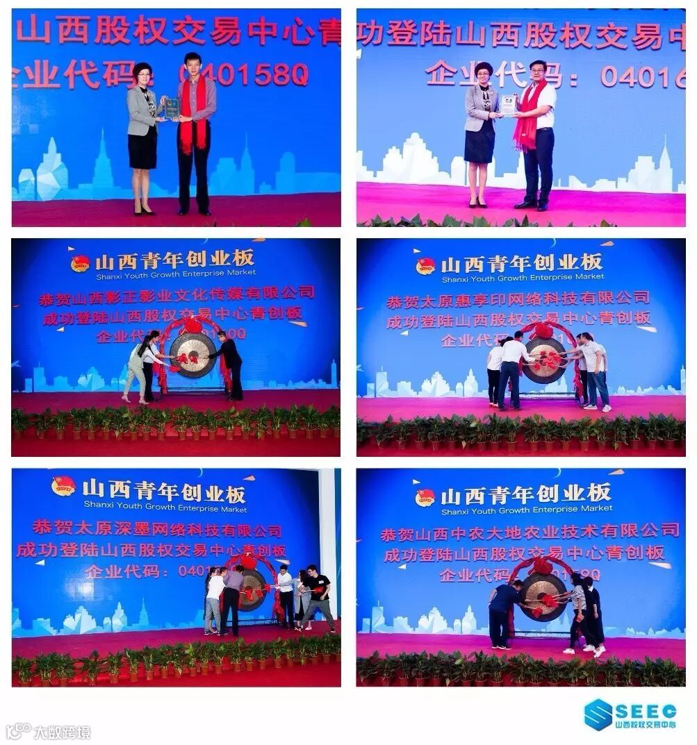 9月16日挂牌展示的企业共有4家,分别是:太原深墨网络科技有限公司、山西中农大地农业技术有限公司、山西影正影业文化传媒有限公司、太原惠享印网络科技有限公司。