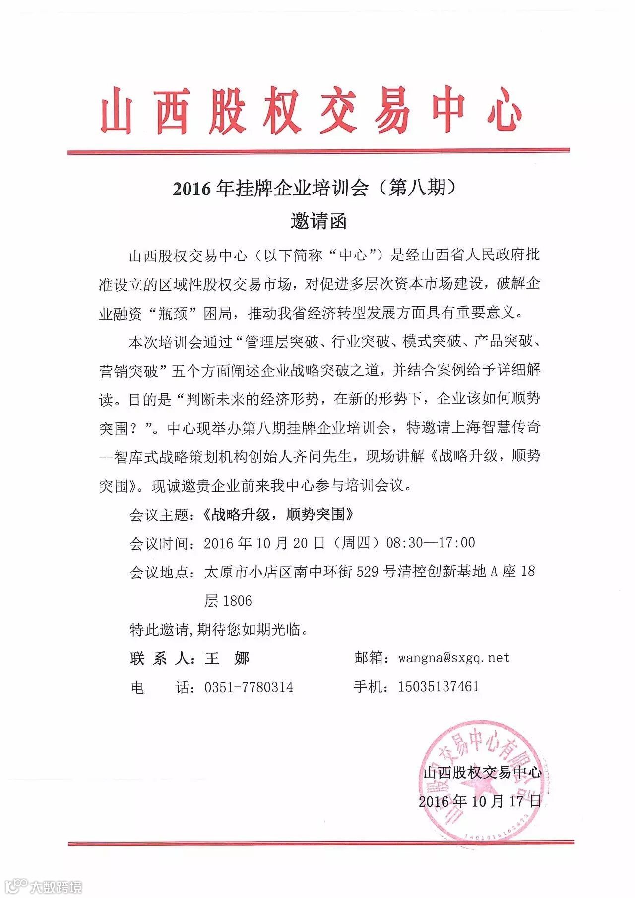 导读:山西股权交易中心第八期挂牌企业培训邀请函