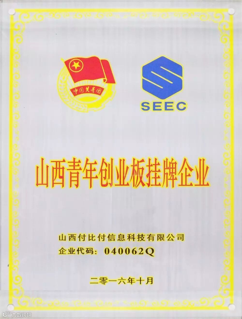 2016年10月,山西付比付信息科技有限公司(FUBIFU)成功登陆山西股权交易中心青创板,企业代码:040062Q。我们将加倍珍惜自己的荣誉,通过更为专业、用心的服务,为所有用户创造更大价值!付比付,让付出更有价值!