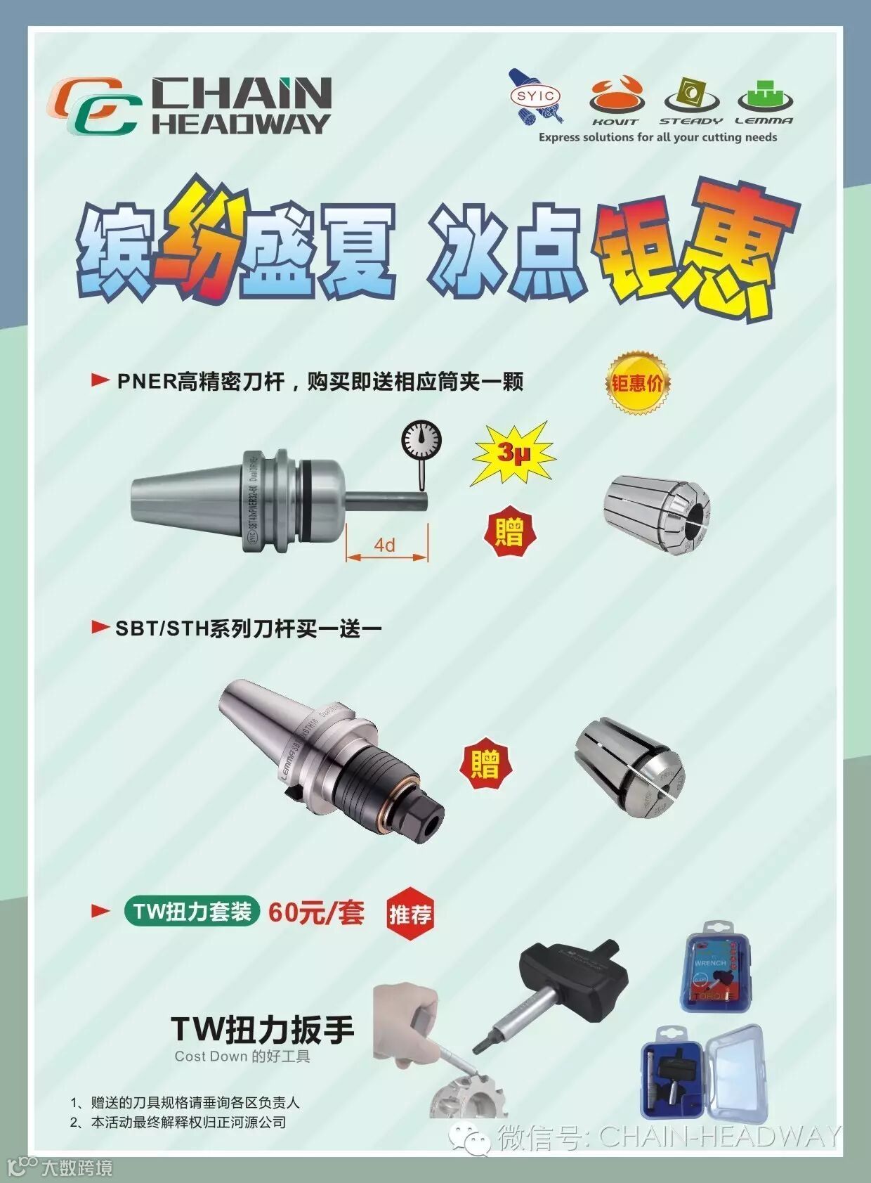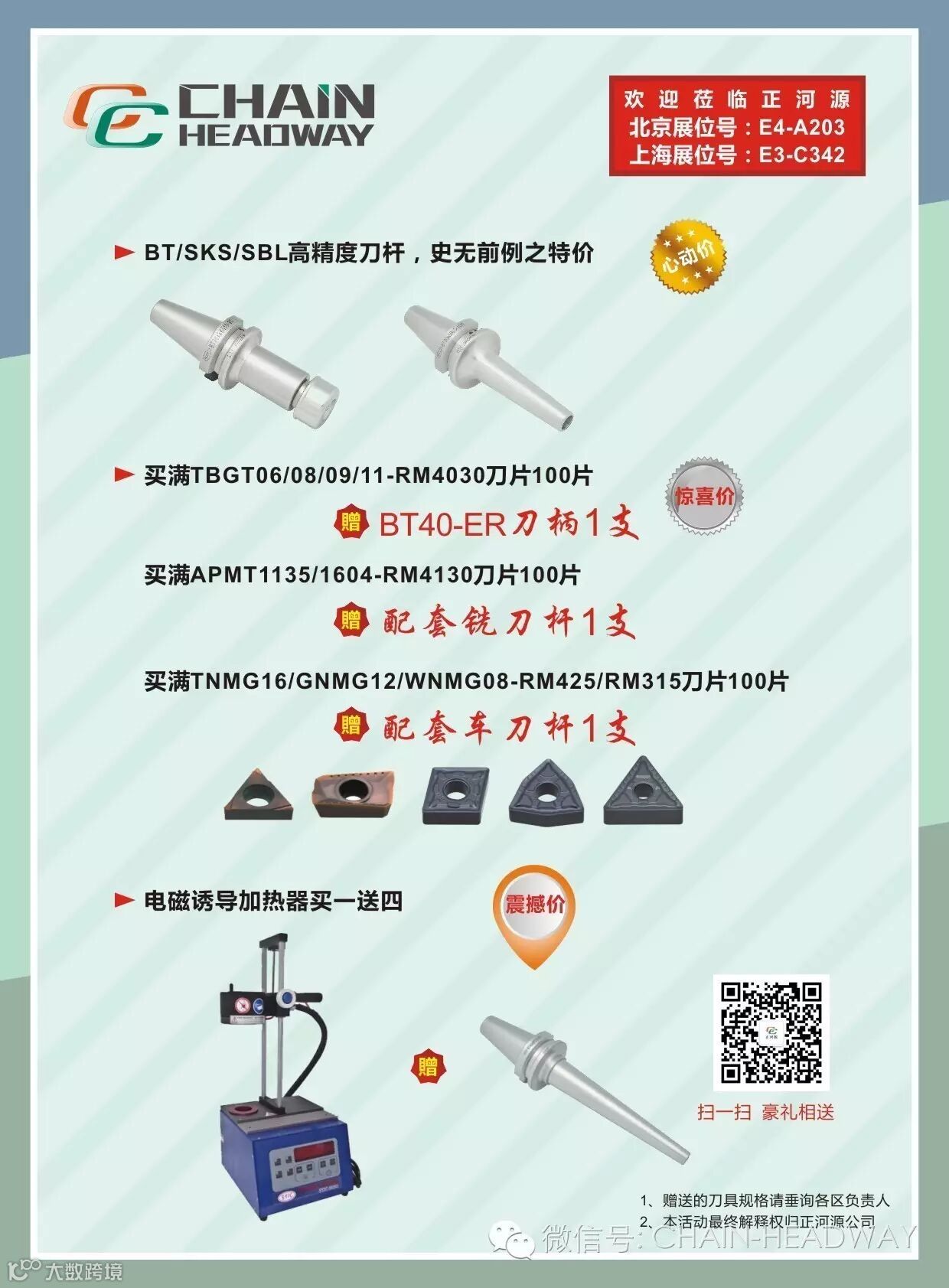 6月20日-7月10日活动期间,关注我司公众微信号:CHAIN-HEADWAY点击右下角菜单栏【官方活动】-【九宫格】即可参与满减折上折优惠活动