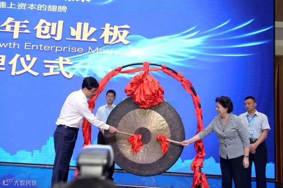 秦宜智同志与胡苏平同志为山西青创板揭牌,同时敲响“青创板”开板锣,罗清宇同志为10家企业代表授牌。