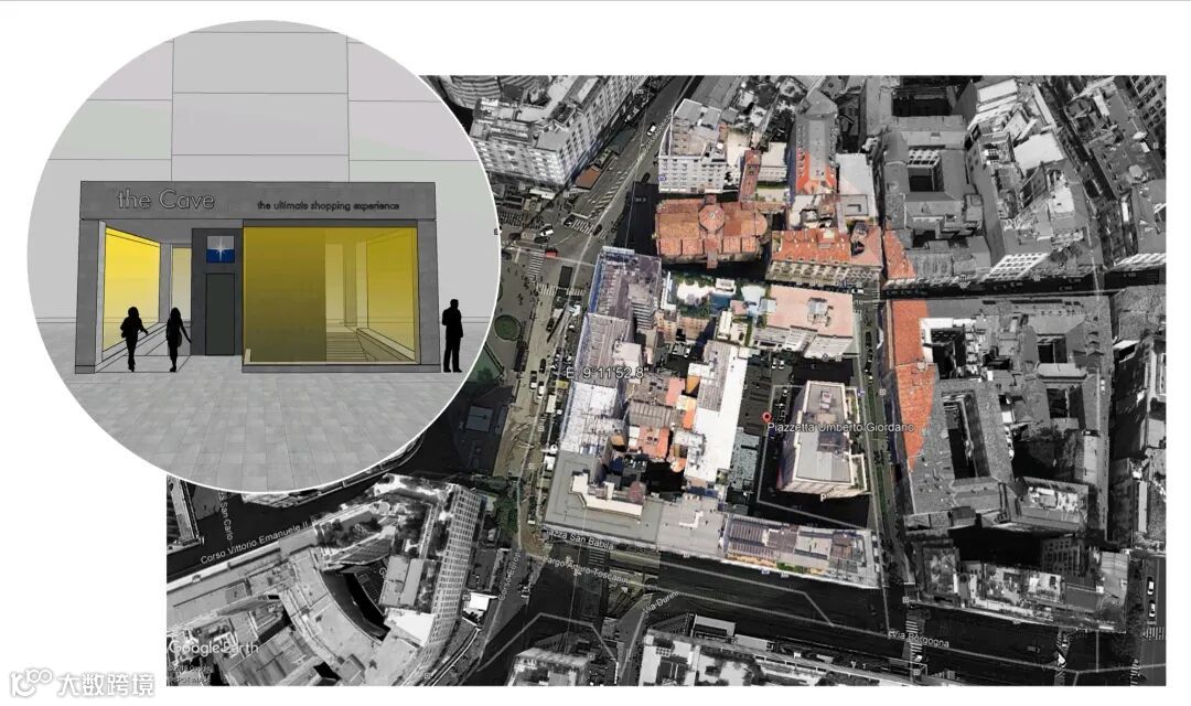 一个跟米兰市中心,Apple总店设计类似的商业改建项目,总面积1200多平米地面层,可覆盖为250平米左右,1200平米的负一层商铺,两层之间有设计时尚的不行楼梯,电梯等连接,地下部分可直接至地铁San Babila站.
