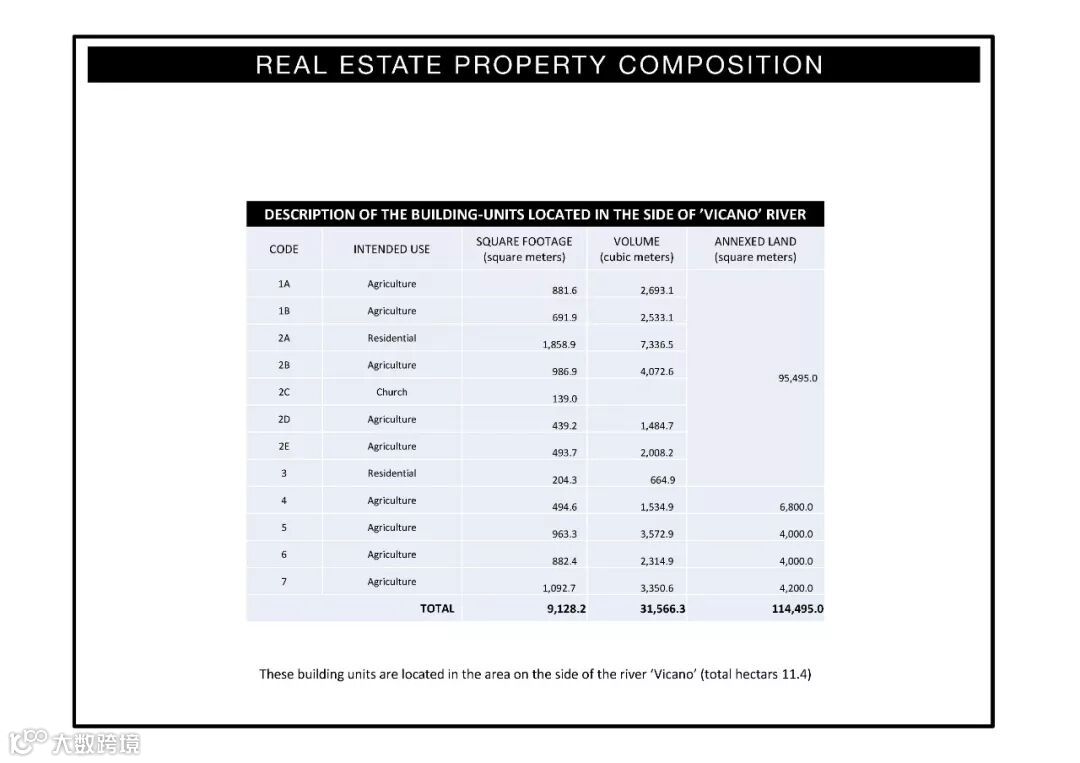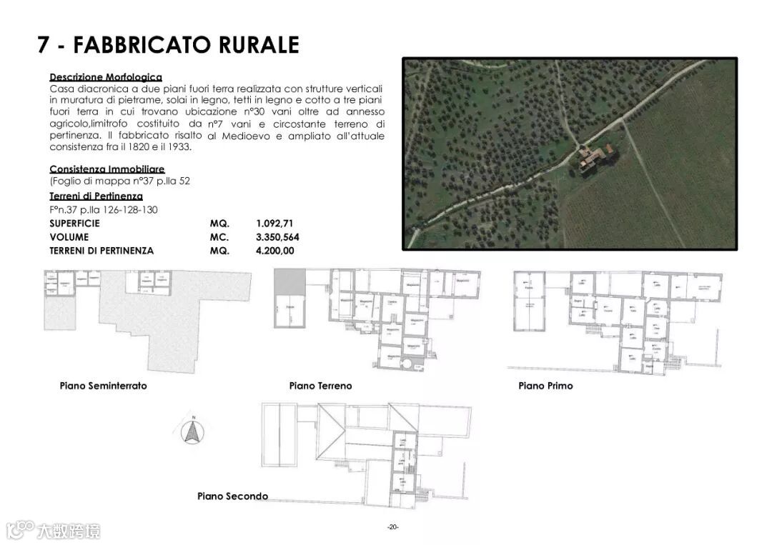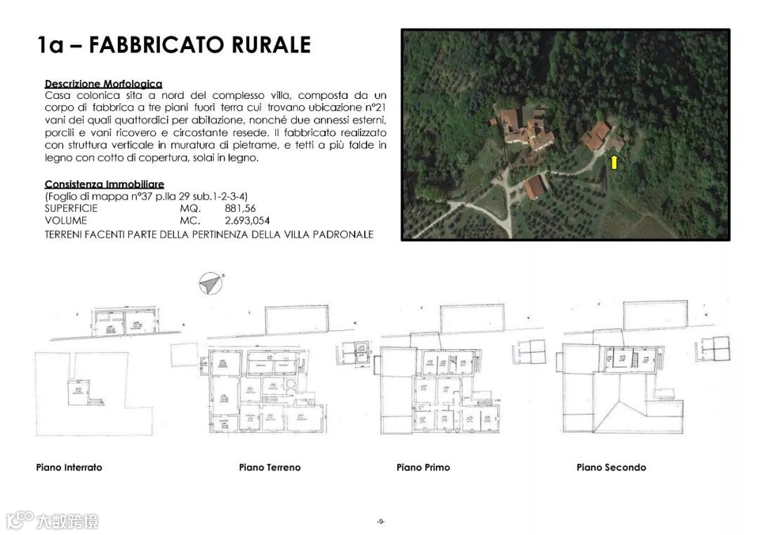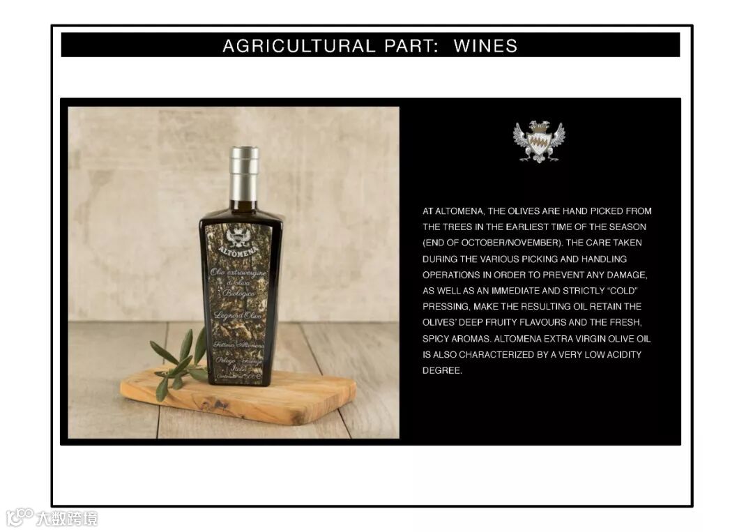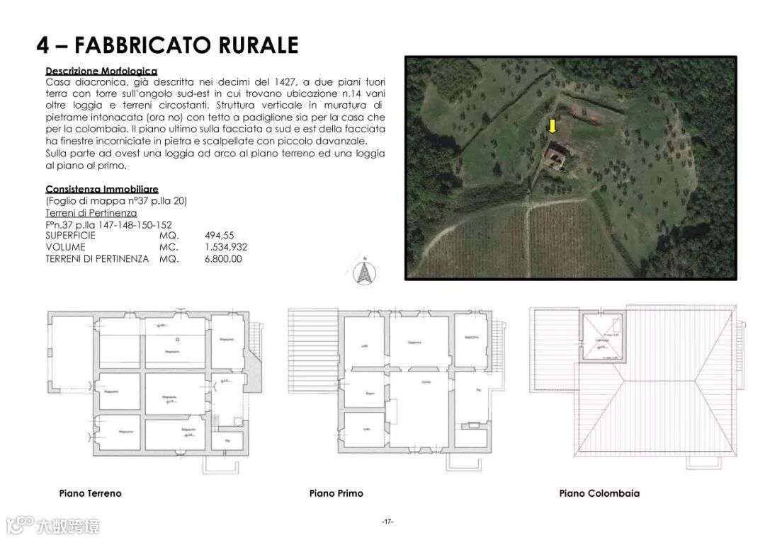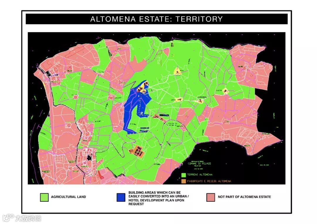 庄园拥有250公顷,除去园内15座独立建筑以外,其余为:60公顷为橄榄园,27公顷葡萄园(可以增加至50公顷葡萄园),其余为弄作物耕地,森林等,售价1300万欧元。