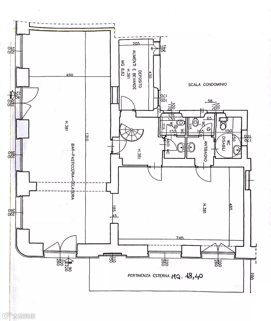 位于米兰市中心办公街区,红线LIMA地铁站附近的VIA MARCELLO大街,一家转角7个大门面,平层130平米+70平米仓库,另外门口有一个20来平米的户外花园。