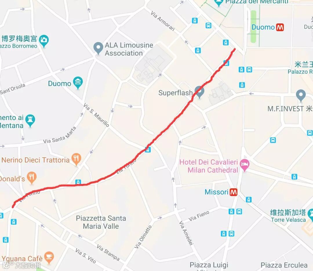VIA TORINO是从米兰市中心多莫广场为起点,连接南部人工运河CORSO GENOVA,以及圣罗仁佐圣殿的一条重要商业街区,商铺林立,此店铺位于麦丹劳对面。