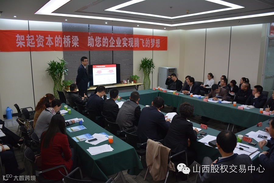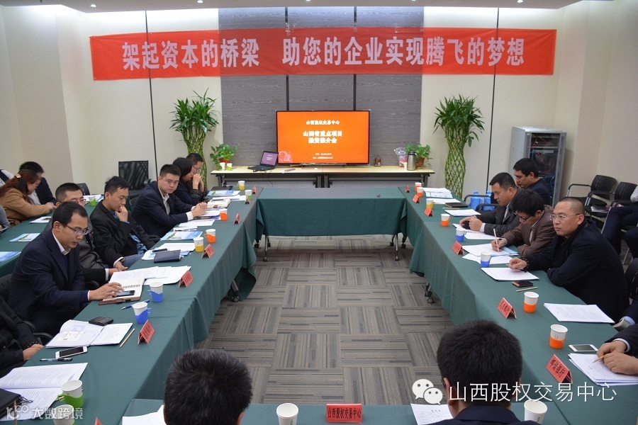 山西股权交易中心2014年11月5日,山西省重点项目融资推介会在山西股权交易中心会议室举行。银行、券商、资产管理公司、保险等金融机构高管及企业代表应邀参加了此次推介会。