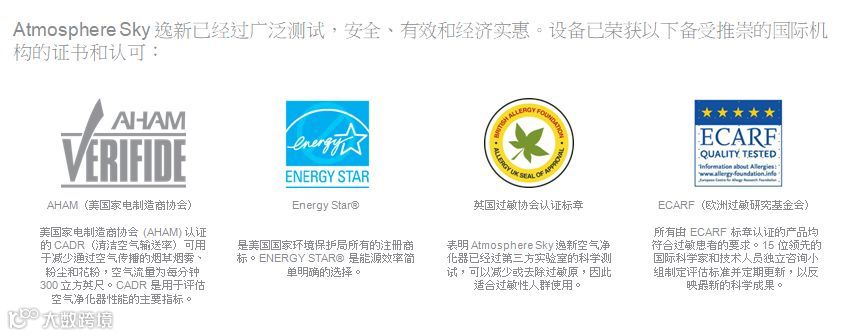 -荣获多个奖项和赞誉,包括 EnergyStar®、英国过敏协会认证标章、ECARF 和 AHAM 认证