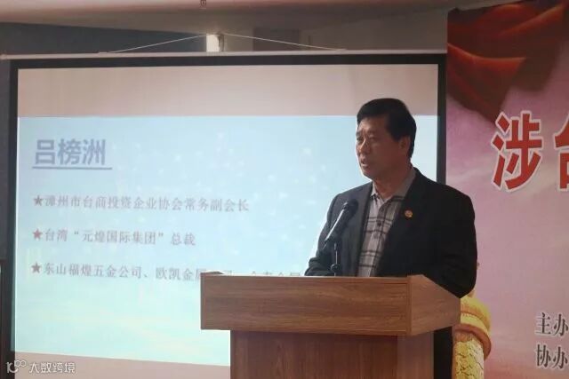 信实漳州分所主任洪亚斌律师作为本次沙龙的主持人宣布开场,随后漳州市台商投资企业协会常务副会长吕榜洲上台致辞。