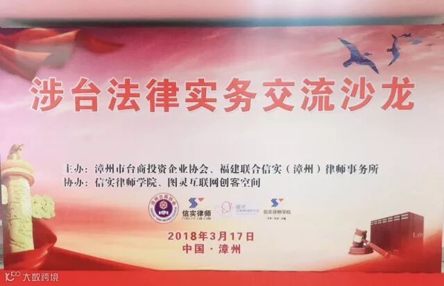 3月17日下午,由漳州市台商投资企业协会、福建联合信实(漳州)律师事务所、信实律师学院与图灵互联网创客空间联合举办的公益性沙龙,“涉台法律实务交流沙龙”在图灵互联网创客空间活动洽谈室举办。