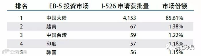 二、EB-5投资市场排名 中国大陆I-526获批量最高
