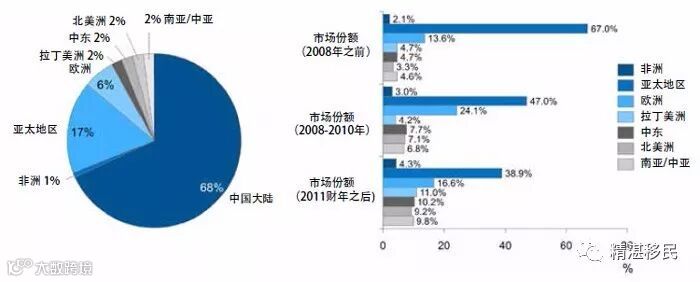 在亚太地区的 EB-5 投资市场中,台湾曾占有一席之地。自 EB-5 开始之日至2007年,台湾的 I-526 申请获批量约占整个地区总获批量的29%。2008 年到 2010 年期间,台湾地区的市场份额下降到不足7%,2011 年到 2014 年期间,形势略有改善,市场份额上升至8.5%。
