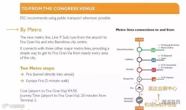 9号机场线可直达巴塞罗那会展中心以及几条市中心的换乘车站