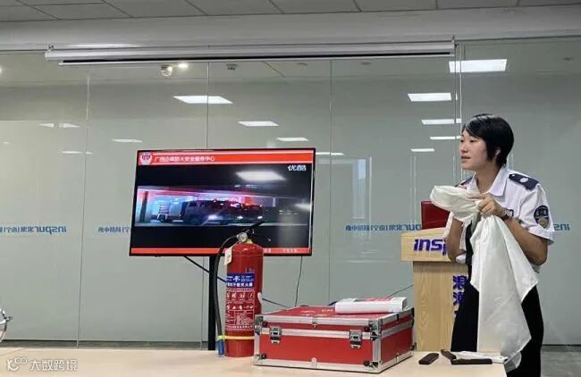“在我们身边有哪些消防器材?如果办公楼宇着火,我们应该怎样逃生?”在简单的提问后,消防安全知识讲座随即展开。讲座运用幻灯片、视频等方式进行,吕教官通过回放南宁市火灾典型案例,直观地讲解消防安全知识重要性、初期火灾处置等消防常识,让现场企业代表深刻感受到火灾的无情和预防的重要性。讲座结束后,吕教官将自带的消防器材展示给企业代表们看,并指导大家使用不同类型的灭火器、安全锤、消防毯等有关消防器具。