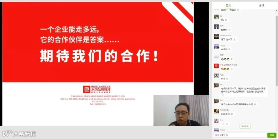 主讲嘉宾冉升能老师主要从品牌价值和形象包装两个方面切入,为在线企业详细讲解如何在创业初期打造适合企业发展的品牌以及如何扩大企业品牌市场价值和竞争力。