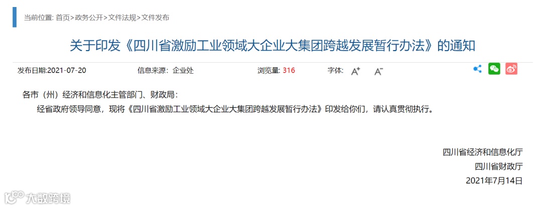 另一方面,近3年来,四川省委、省政府高度重视工业发展,紧盯企业培育薄弱环节,先后出台《关于加快构建“5+1”现代产业体系推动工业高质量发展的意见》等,明确提出“实施‘百亿强企’‘千亿跨越’大企业大集团提升行动”“对首次入围中国企业500强、中国民营企业500强的大企业大集团给予激励”“对大企业大集团年营业收入新跨100亿元台阶实施奖补”等决策部署和具体要求。