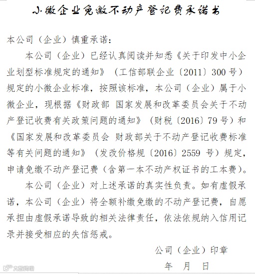 根据国家、省最新文件精神,进一步优化市本级免收小微企业登记费程序,即日起全面实行小微企业免收不动产登记费告知承诺制