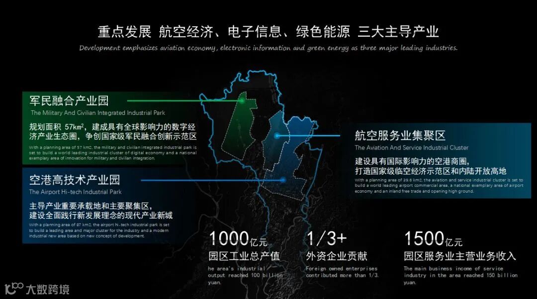10万在校本科大学生,10万市场主体,10万科技从业人员,10万航空从业人员。重点发展航空经济、电子信息、生物医药三大主导产业,从企业需求出发,推出“企业咖啡时”“市民茶话吧”“科创菁英汇”服务平台,培育国际化投资生态和经营环境。获评环球时报2020全国“最具投资营商价值区”、入选“2020中国综合投资热力百佳县市”十佳县市。