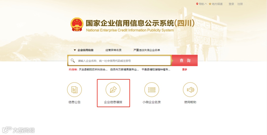 进入“企业信息填报”模块:在“国家企业信用信息公示系统(四川)”网站主界面,点击“企业信息填报”按钮,进入登录界面。