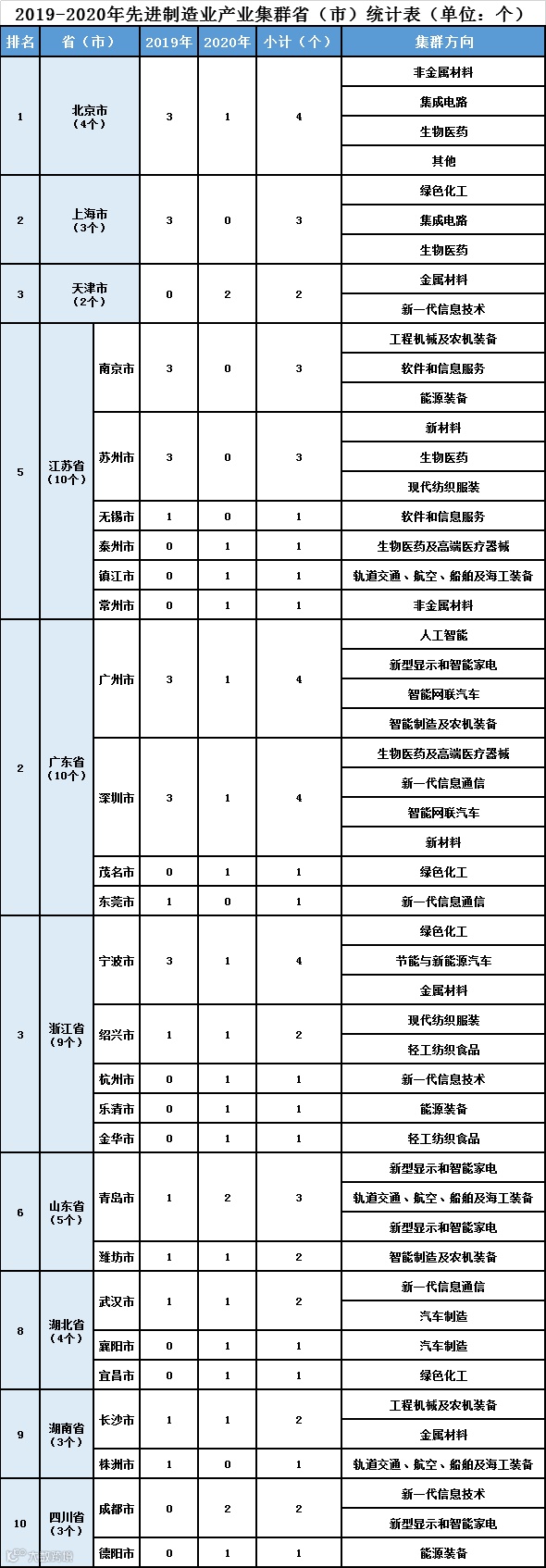 2019-2020年先进制造业产业