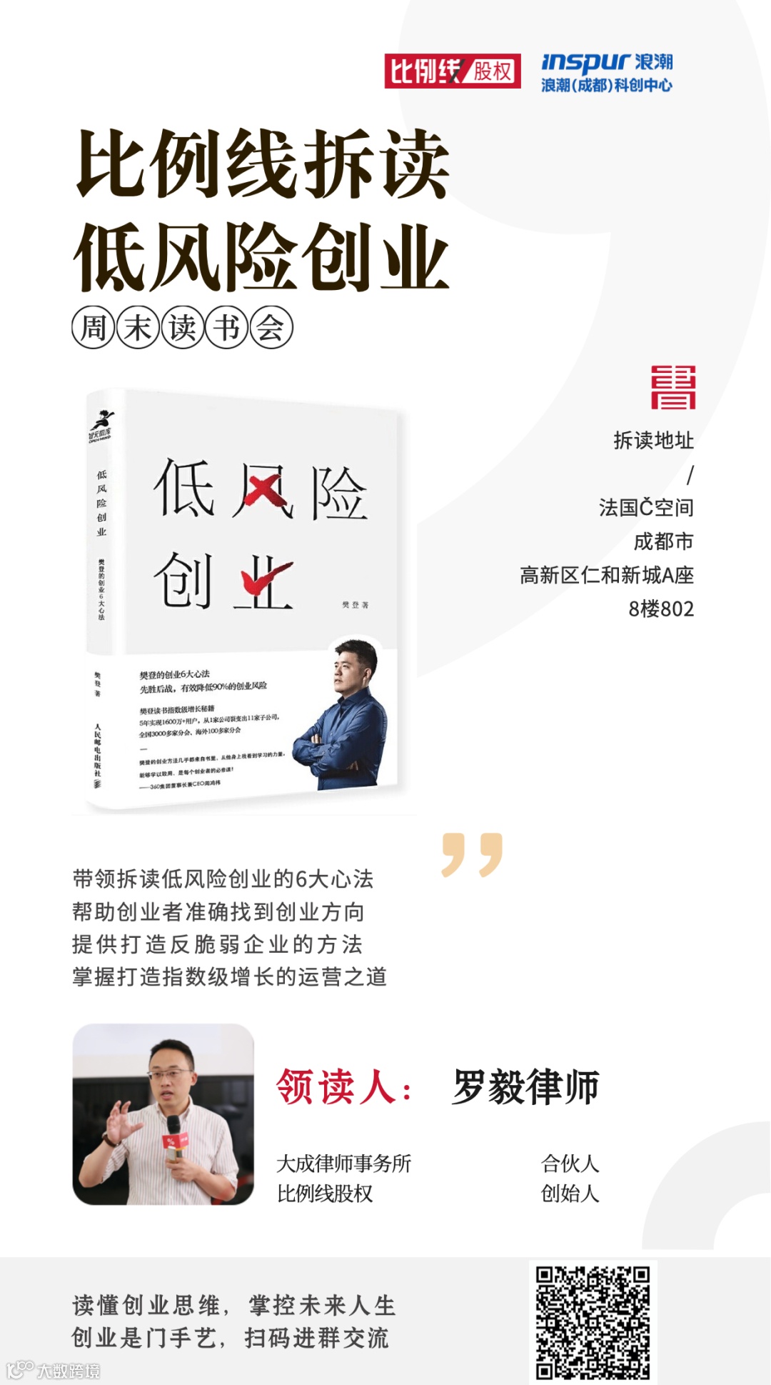 12月25日,由浪潮(成都)科创中心、比例线股权、樊登读书成都运营中心共同举办的“拆读《低风险创业》读书会”活动拉开帷幕,本次活动共有40多位创业者到达现场。