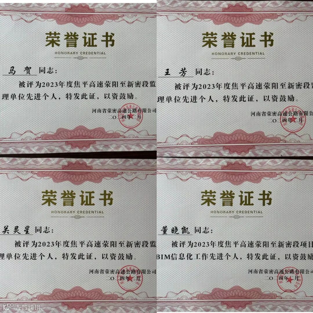 近日,公路监理公司荥密高速第二驻地办圆满顺利完成2023年度各项监理工作,荣获项目公司表彰,并被评为2023年度荥密高速优秀监理单位,同时3名同志被评为先进个人,1名同志被评为BIM信息化工作先进个人。