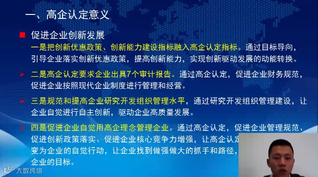 近日,“筑梦创新 质越高企”国家高新技术企业认定培育管理线上专题培训会顺利举办。本次培训会从企业申报高企的意义及基础知识,认定实务操作和2020年高企认定工作安排等方面,为参与企业进行了详细讲解。