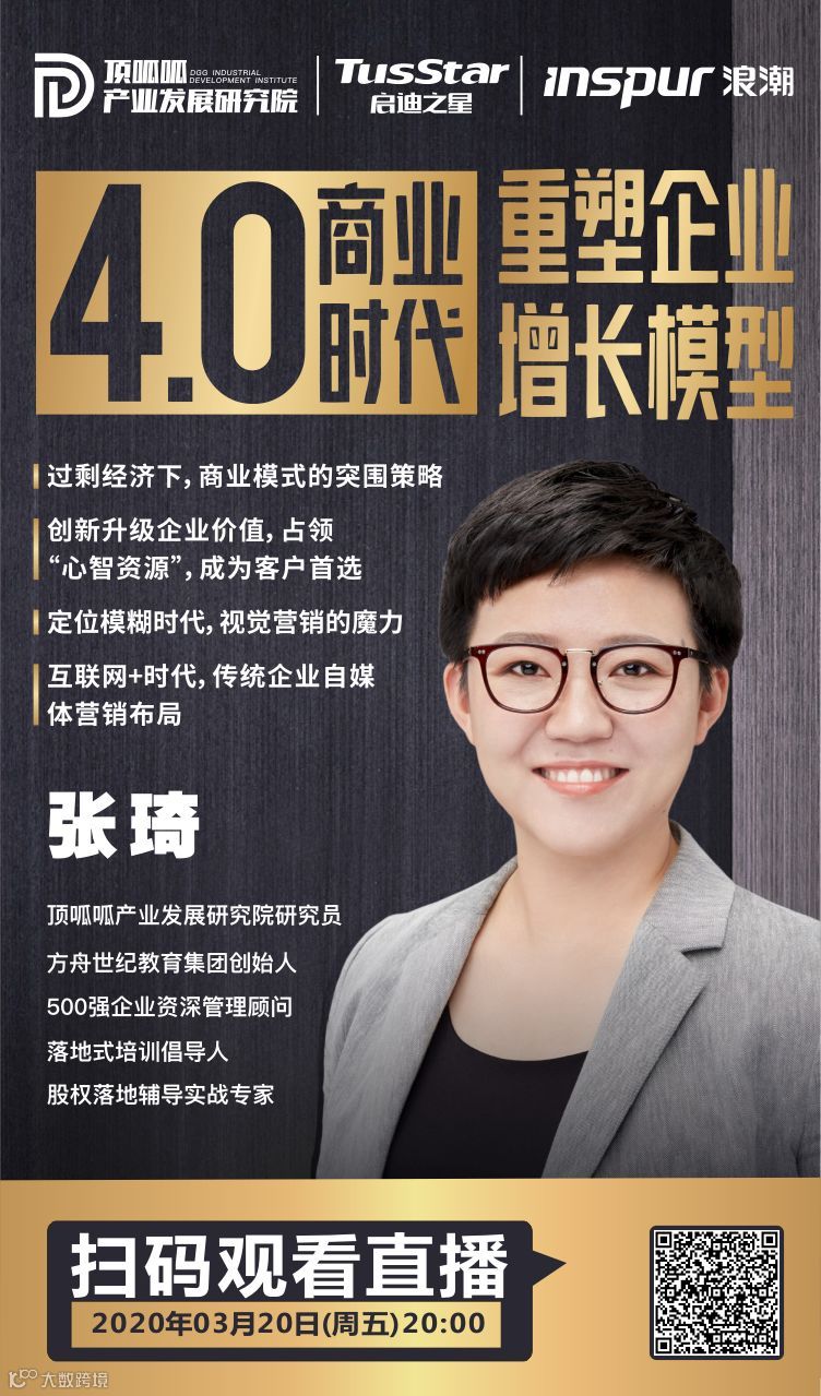 3月20日20:00,启迪之星(聊城)、启迪之星(四川)、顶呱呱产业发展研究院、浪潮(成都)科创中心共同举办线上直播活动(企业管理篇)——“商业4.0时代,重塑企业增长模型”,帮助企业梳理商业模式,重构品牌定位与渠道定位。