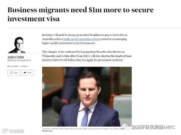 这项变更将由移民部长亚历克斯·霍克(Alex Hawke)于周三确认,并将于7月1日生效,变更还将缩短投资者等待获得永久居留权的时间。