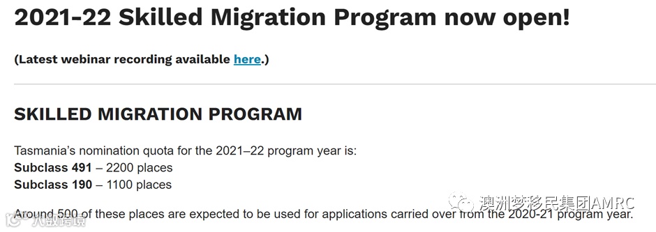 2011-2022财年塔斯马尼亚技术移民州担保已经开放,其中190类签证共有1100个配额,491类签证有2200个配额。