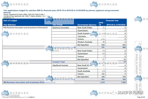 2018-2019财年,全澳一共发放了309份888A商业创新签证。本财年前三季度,888A的批签数量是228份。