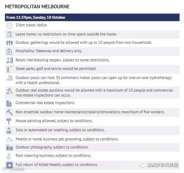 因此,州长Danial Andrews宣布,自今日晚11.59分起,墨尔本地区具体解封内容如下: