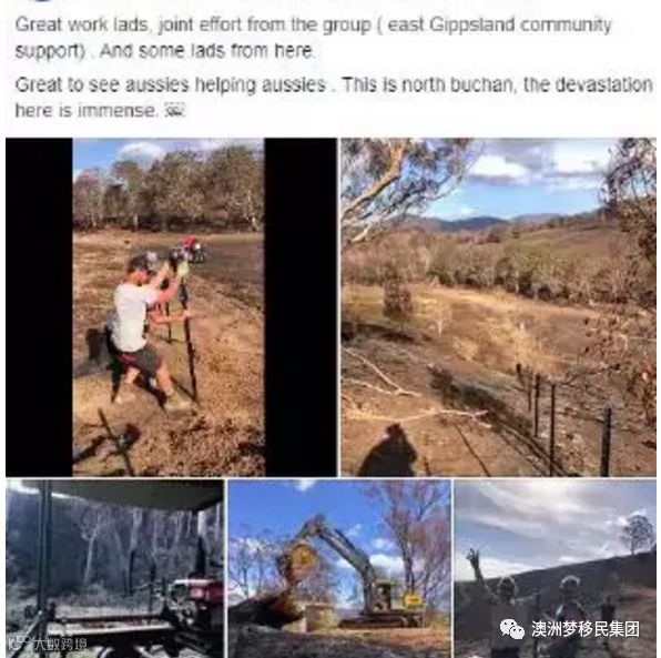 这两天,一辆辆皮卡车接二连三地开往被大火烧毁的小镇,没有满载救灾的物资,也没有慈善机构的Logo,从车上下来的都是不修边幅、浑身肌肉的糙汉子,他们来自澳洲各地,背着各种工具,穿着各种颜色荧光服、工装裤、脏兮兮的厚皮靴,或许还有纹身花臂,直奔那些废墟而去。