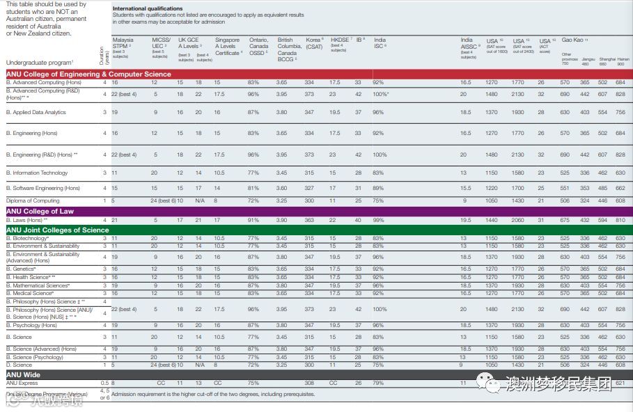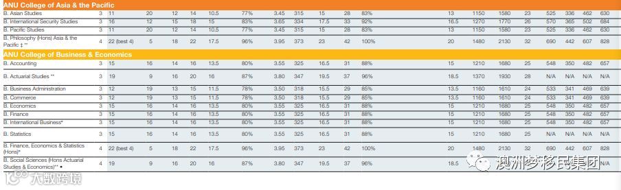 这是今年澳洲国立大学各专业的录取分数,请参考GAO KAO分数: