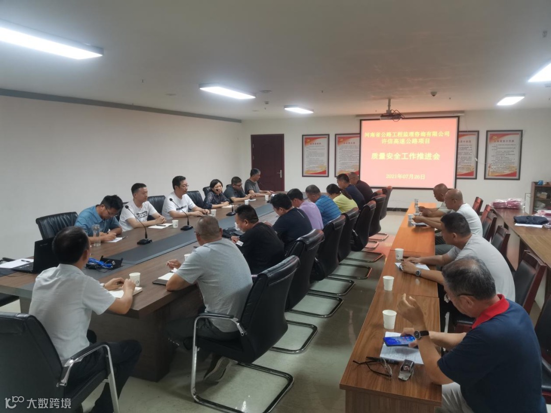 随后,结合集团和监理公司下发的《进一步加强项目质量安全监理工作的通知》文件精神和项目实际情况,在许信高速第一总监办召开许信项目监理工作质量安全推进会,项目第一、第二总监办负责人及主要监理人员参加了会议。会上,现场监理人员围绕许信项目特点、监理工作面临的难点等方面做了全面汇报。就现存问题,张总提出:一是要提高思想认识,紧跟集团公司发展规划,加强监理工作的使命感和责任心。二是要目标明确,紧抓工作重点,提升监理工作效率和成效。三是要廉洁自律,强化责任担当,勇于作为、敢于作为。四是要勇于改进不足、不断提升工作质量,确保监理工作再上新台阶。最后,张总嘱咐大家在做好本职工作的同时也要做好夏季防疫、防汛、防暑工作。