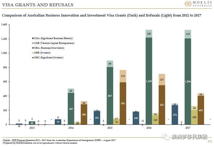 8月29日,Moelis Australia 发布2012-2017各财年澳洲商业投资移民类签证统计数据,数据来源于澳大利亚移民及边防局 Australian Department of Immigration and Border Protection (DIBP)。
