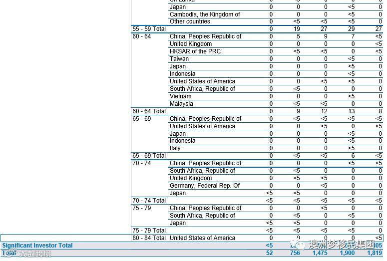 ·188C重大投资移民签证2012-2017各财年数量分别为285/647/1393/180/370,最高年份占据90%以上,上个财年占了85%的份额。香港,澳门,越南,美国,南非,马来西亚,英国,韩国,瑞典分列中国之后。