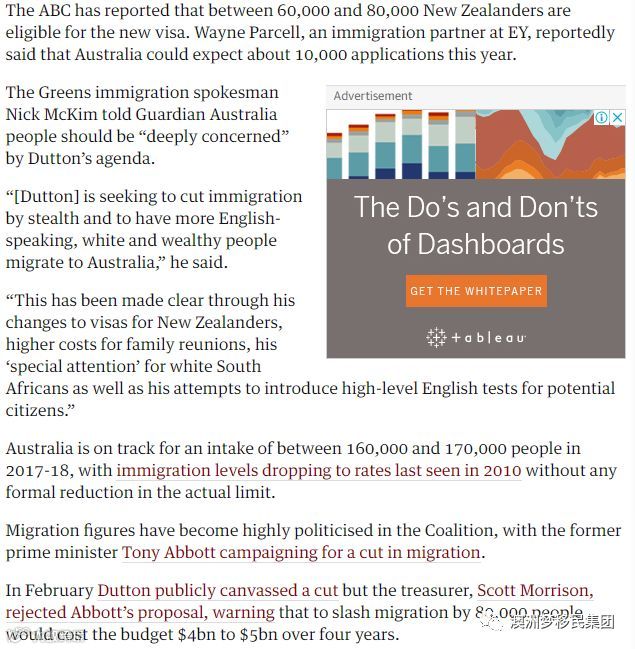 其次,正如绿党移民发言人Nick McKim向《卫报》表示的“严重的担忧”——“现政府正在寻求让更多说英语、白人和富有的人移居澳大利亚。”这里面,目前对华人群体的商业投资移民影响还不是很大,因为华人投资移民支撑着澳洲商业投资移民的大半壁江山,尽管华人不是以英语为母语。