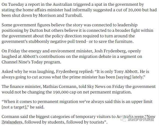 首先,澳洲每年的净移民数量上限依然是190000,尽管前一段内政部长在报告中非正式建议减少20000,被财政部长莫里森Morrison和总理谭宝Turnbull否决关闭了。但是,据统计2017-2018财年澳洲净移民数量是160000到170000,下降到2010年以来的最低水平。在距离本财年结束只有3个月而且各州邀请基本结束和关闭的情况下,数字应该基本稳定在170000上下。也就是说,190000是上限,不是目标!