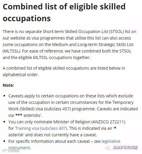 原适用于雇主及政府担保的《担保技术移民职业列表 CSOL》被调整为《短期职业技术列表STSOL》。