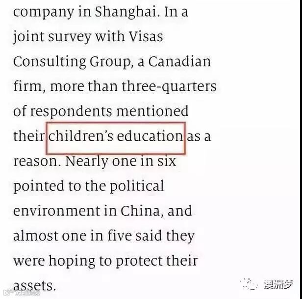 胡润公司于加拿大Visas Consulting Group公司联合调查,超过3/4调查者表示,考虑移民很大一部分原因是子女教育。澳大利亚公民可享有12年公立学校免费教育制度,大学可申请贷款和奖学金,学费远低于海外留学生。