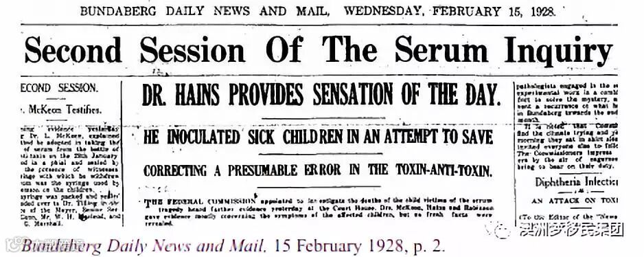 就在悲剧的前两年,Bundaberg地区就报告了200多例白喉疫情,此后的10年,有4073名澳洲儿童死于白喉,而当时美国研发出了白喉疫苗,效果不错,死亡率显著下降。