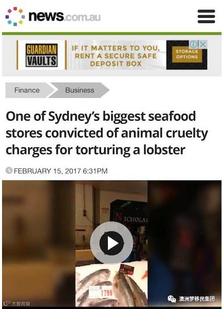 悉尼海鲜市场的一家鱼档就因为杀龙虾用了不专业的手法被传到网上,被澳洲皇家防止虐待动物协会(RSPCA)认为没有按照正常方式处理龙虾,已经违法,被罚款1500澳元。