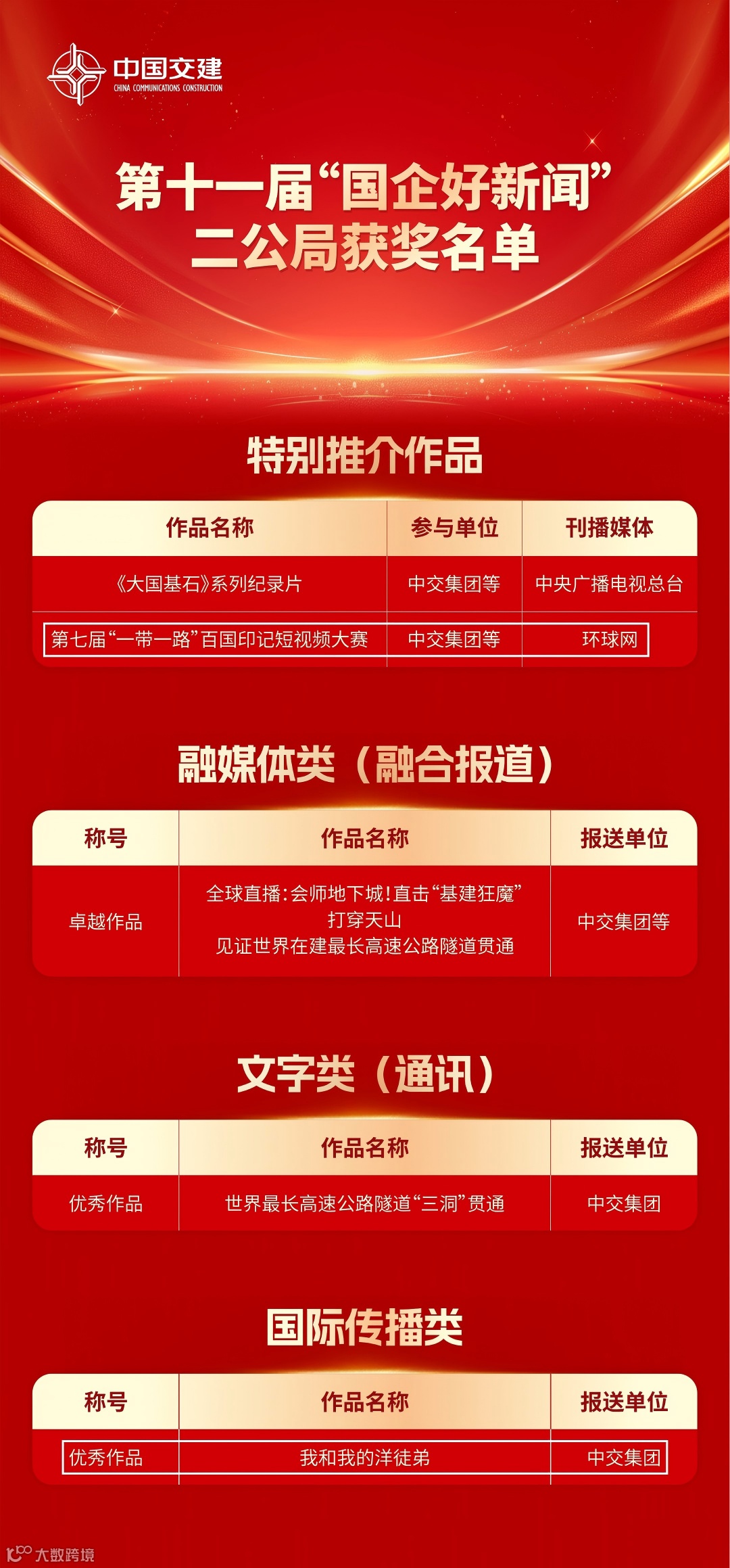 近日,第十一届“国企好新闻”推介作品揭晓。公司2部作品入选。其中,特别推介作品1项,国际传播作品1项。