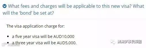 3年签证—$5000澳元,5年签证—$10000澳元,