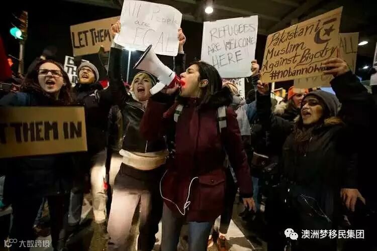 一纸禁令,引起了轩然大波,激起全美大反抗。对此感到愤怒的人们纷纷走上街头,在全美各地发起示威。旧金山、洛杉矶、达拉斯、休斯顿、纽约等主要城市的国际机场,以及这些城市的联邦法院门口,示威者高举写有“我是移民”、“不要禁令”等字样的牌子,向海关和边境保护局等政府部门施压,要求他们拒绝执行总统令。