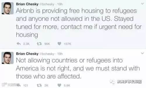 在这个问题上,创业公司们的态度更加鲜明,他们解决问题的手段也很明确。Box 创始人亚伦·列维表示,“在伦理、人道、经济、逻辑的层面上,这项禁令都是和美国的原则背道而驰的。”;Lyft CEO 洛根·格林宣布,公司将在未来 4 年内向美国民权联盟捐赠100 万美元;Airbnb 创始人布莱恩·切斯基则在 Twitter 上宣布,给难民以及“所有被美国拒绝入境者”提供免费的住处,文章已经被转发了 8.7 万次,点赞 14 万次;Uber 选择用“不停运”的方式来支援示威活动。